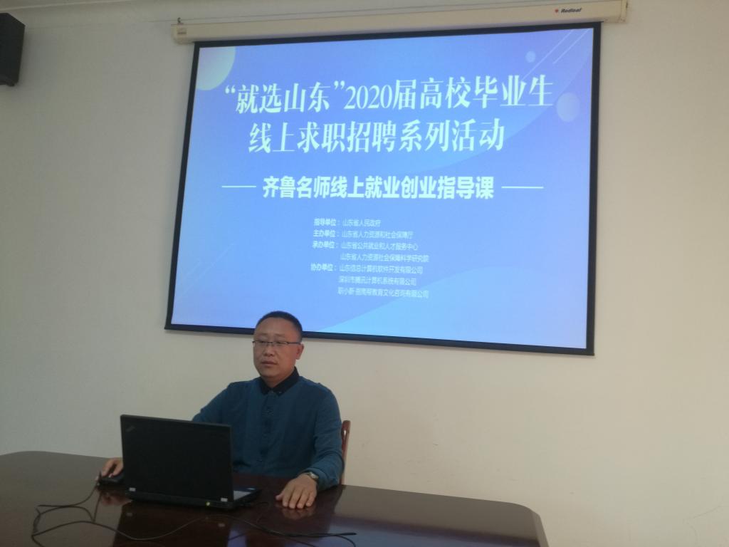 5月9日上午,齐鲁名师线上就业创业指导课求职类第十七讲如期开播,全球最大顶级体育平台王衍国老师应邀参加,主讲《君子不器,就选山东》课程,全省高校2020届毕业生和有关老师报名听课。