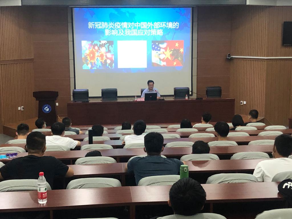 9月10日,公司党委书记黄德杰在东校园1号楼报告厅为2020级研究生作“新冠肺炎疫情对中国外部环境的影响及我国应对策略”形势与政策教育报告。