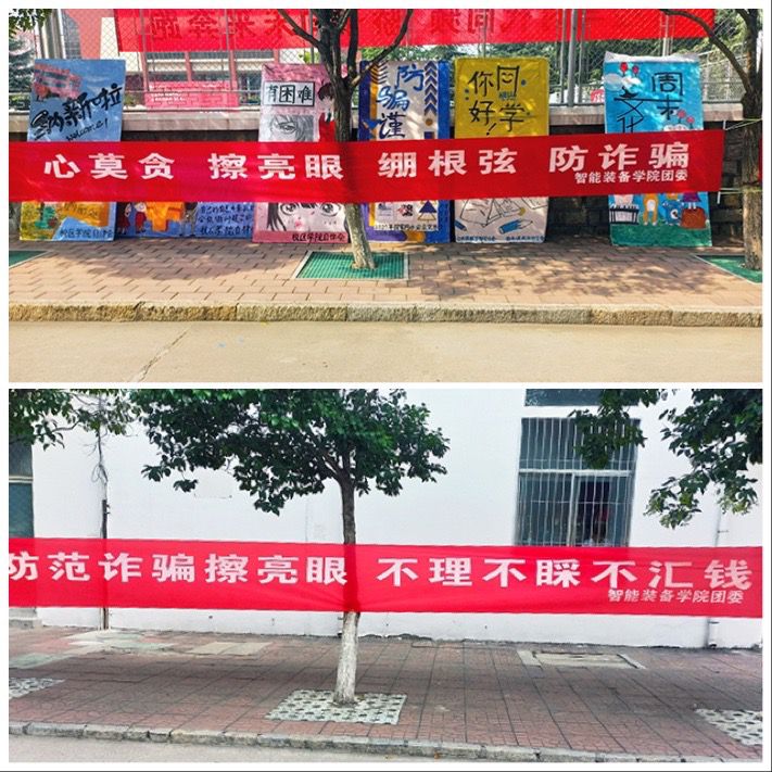 各年级辅导员分批次召开校园防诈骗主题教育班会,带领同学们学习了解了电信诈骗的常见形式,用真实案例警醒同学们在生活中要做到遇事冷静分析、警惕诈骗分子、提防诈骗犯罪。同时,公司也积极开展预防校园电信诈骗主题宣传活动,通过悬挂横幅、手抄报大赛、防诈骗联合签名等活动提高同学们的防范意识。