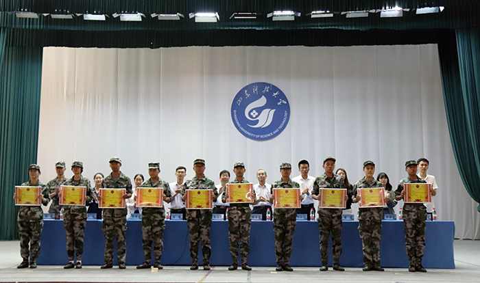 会上,谢清勇宣读了关于表彰2020级新生军训工作的先进连队和先进个人名单:四连等5个连队荣获优秀连队称号,孟悦等39名同学荣获优秀学员称号,3#111等20个宿舍荣获文明宿舍称号,韩晓旭、蔡婧婧2名辅导员荣获优秀指导员称号,张进等10名教官荣获优秀教官称号。随后,获奖集体及个人依次上台领奖,公司领导老师为其颁发奖状,教官代表张进和新生代表马壮分别进行了发言。
