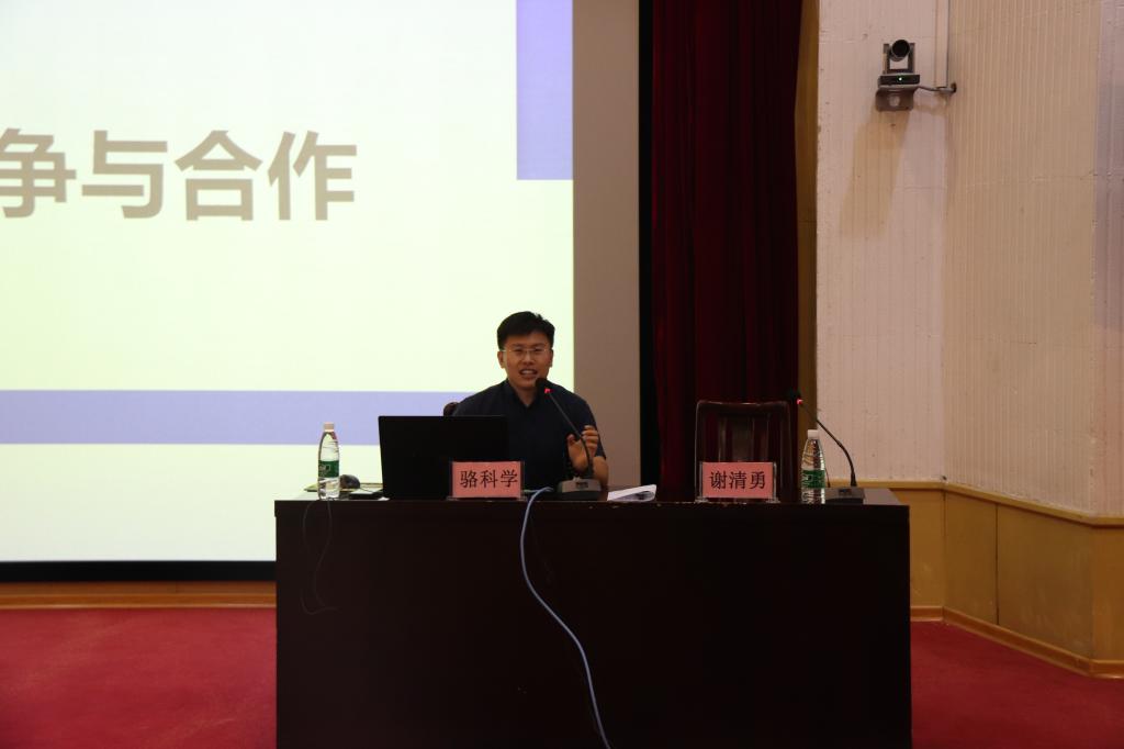 会议伊始,谢清勇对骆科学的到来表示热烈欢迎。骆科学结合自身十余载艰辛的就业、创业经历,从就业与创业、竞争与合作以及实习机会与平台三个方面详细讲述了创新与创业相关知识,他指出:创新就是把现有的状态再往前推进一步;创业就是把有共同需求的合法事情,商业化。骆科学在谈及竞争与合作时,以“红黑游戏”的形式调动了同学们兴致,引导同学们切身感受竞争与合作,给同学们带来了很大启发。骆科学在总结时指出:“通过这个游戏,能够给大家在生活中和学习中带来一些启发,在以后的生活中,存在竞争晋升机制的时候我们应该要有全局观念、胸怀器量以及突破思维定势的能力,建立正确的竞争观以实现双赢的局面。”论坛最后,骆科学鼓励同学们在就业、创业道路上多一点勇气和自信,并期望与公司加强联系,搭建起合作交流的渠道,为广大同学提供实习机会与创新创业平台。