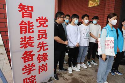迎新当日,公司党员先锋队在礼堂内庭设立迎新服务岗亭,以党员先锋的实际行动欢迎莘莘学子,诠释智院学子的责任担当,队员们热情积极地为到校的新生答疑解惑,耐心主动地为陪同的家长指引道路,同时还向新生及家长介绍报到流程、专业设置、军训安排、生活环境等相关事宜及问题处理办法。服务岗受到大家的广泛好评,充分展示了先锋队员们无私奉献的精神品质,热情周到、细致入微的服务也让初入校园的新生及家长倍感亲切与温暖。