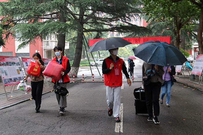 热情服务,关爱新生到校如家。秋雨淅沥,但丝毫不减新生报到的热情,迎新志愿者们和党员先锋队队员全程引导新生报到,积极为新生搬运行李,向他们介绍报到流程和专业设置等相关事宜。公司领导也莅临迎新现场指导工作,了解迎新工作情况,积极回答员工及家长的问题,对各部门工作人员和志愿者的辛勤付出表示感谢。