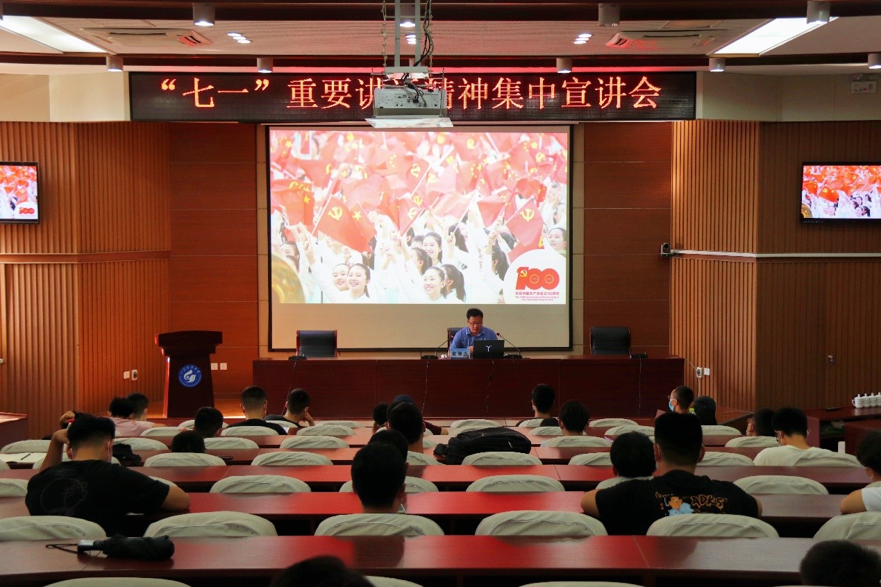 黄德杰以“回望百年奋进路,砥砺前行新征程”为题,与同学们一同回望光辉历史、擘画光明未来。宣讲会中,黄德杰立足中国共产党百年华诞的重大时刻和“两个一百年”历史交汇的关键节点,从“百年奋斗,伟大成就”、“赓续精神,血脉相传”、“以史为鉴,开创未来”、“勇担使命,强国有我”等四个方面概述了习近平总书记“七一”重要讲话的主要精神,让同学们深刻感知我们党百年来走过的光辉历程和创造的伟大成就,深刻领会党百年奋斗历程积累的宝贵经验,深刻领悟以史为鉴、开创未来的“九个必须”的重大意义。最后,黄德杰强调,青年是祖国的未来,民族的希望,学习贯彻习近平总书记重要讲话精神是广大青年的重大政治任务,勉励同学们一是要学深悟透,自觉用习近平新时代中国特色社会主义思想凝心聚力铸魂,永远感党恩、听党话、跟党走,将个人前途与党的宗旨和国家命运同频共振,与时代一起前行,与人民共同奋斗;二是要力学笃行,学出对民族复兴的责任与担当,主动作为“敢担当”,脚踏实地“强本领”,勇于创新“善作为”,做有志气、有骨气、有底气的新时代青年;三是要深学细悟,学出干事创业、刻苦学习的动力与干劲。