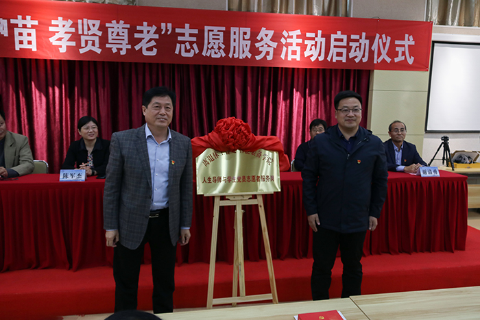 陈军杰与裴国栋代表双方签署“人生导师与员工党员志愿者服务岗”共建协议。韦安永与黄德杰为“人生导师与员工党员志愿者服务岗”牌匾揭牌。谢清勇宣读了“人生导师与员工党员志愿者服务岗”和“引航护苗,孝贤尊老”志愿服务活动实施方案。