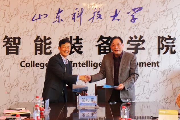 刘纪敏和孙刚义代表校企双方签约奖学金设立协议。裴国栋代表公司接受捐赠,并合影留念。(文/图:孙胜奥)