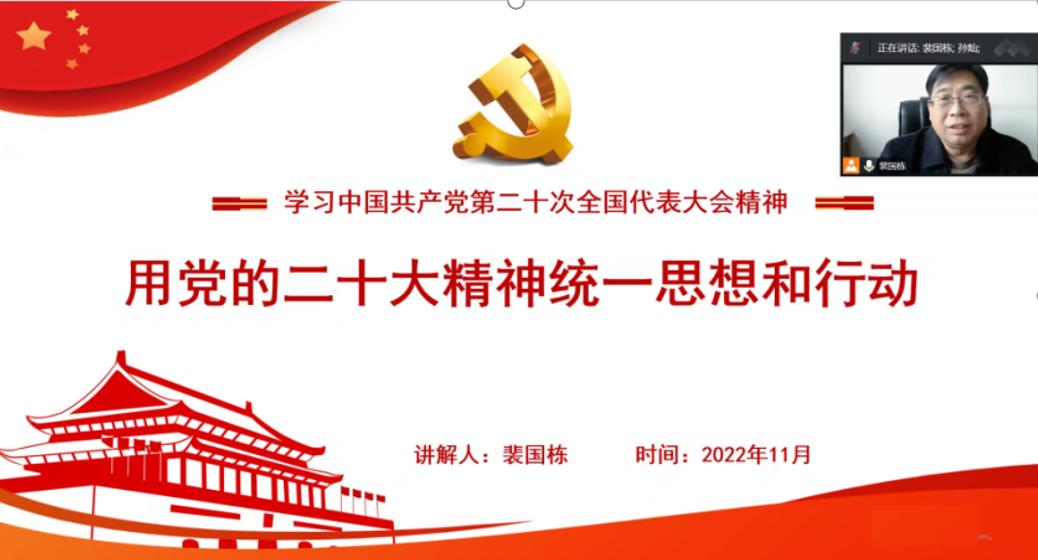 为深入学习贯彻党的二十大精神,号召员工党员用党的二十大精神统一思想和行动,11月8日下午,公司党委副书记兼副经理裴国栋通过线上方式为员工第五党支部全体党员和37期党员发展对象讲党课。