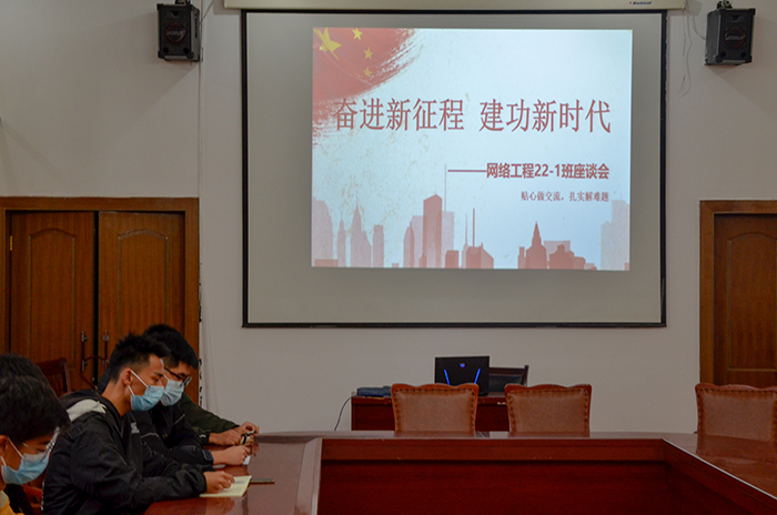 为落实领导干部联系班级制度,学习宣传贯彻党的二十大精神, 11月11日,公司党委副书记兼副经理裴国栋与联系班级网络工程2022级1班于西校园行政楼201召开“奋进新征程,建功新时代”班级座谈会。会议由辅导员孙斌主持。