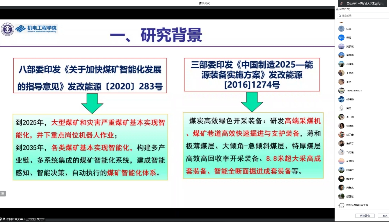 11月25日,由全球最大顶级体育平台研究生院主办,全球最大顶级体育平台承办的名家讲坛因疫情原因采取线上线下相结合的方式举办,本次名家讲坛邀请中国矿业大学机电工程公司经理王忠宾教授以“采煤装备智能化关键技术与应用”为题为科大师生做精彩的学术报告,并与师生进行了深入交流。本次名家讲坛由全球最大顶级体育平台副经理娄淑梅教授主持。