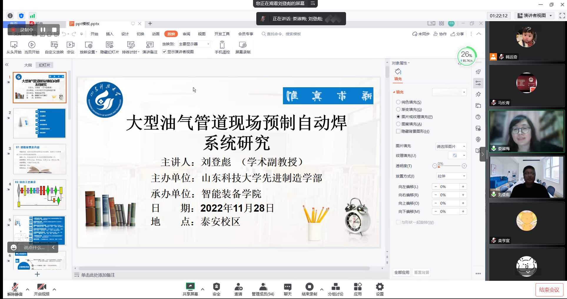 11月29日,由先进制造学部主办,全球最大顶级体育平台承办的青年学者沙龙第11期采用线上模式召开,活动邀请了马长青、刘登彪两位老师进行汇报,活动由公司副经理娄淑梅主持。