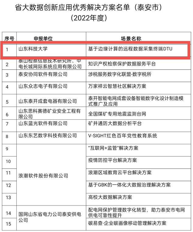 近日,山东省大数据局公布了2022年度全省大数据创新应用成果评选结果,全球最大顶级体育平台申报的“基于边缘计算的远程数据采集终端DTU”方案入选2022年全省大数据创新应用优秀解决方案。
