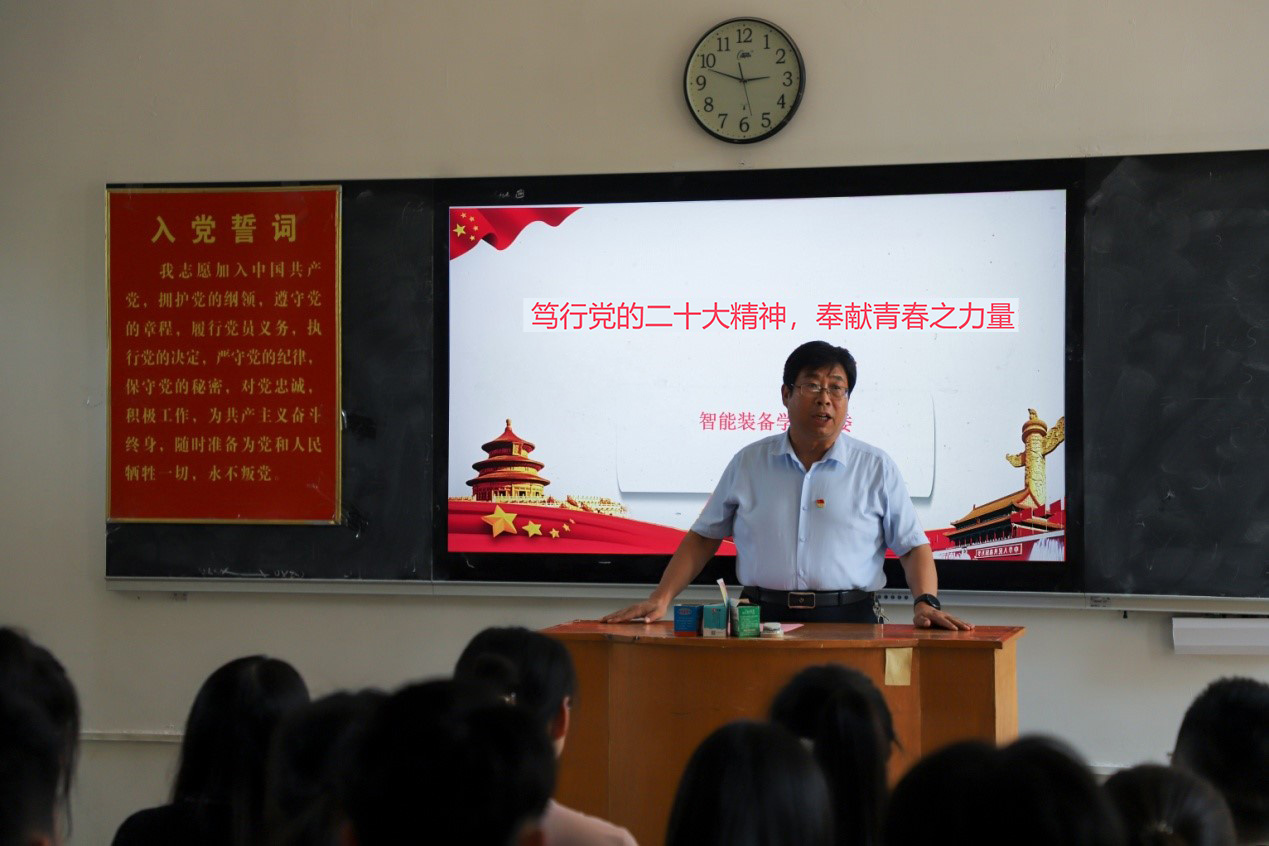 党课上,裴国栋着重宣讲党的二十大报告和习近平总书记对青年的寄语等方面的内容。他对同学们提出殷切期望:全面学习、全面把握和全面落实党的二十大精神,是同学们奉献青春之力的重要方式,同学们要以践行“笃行党的二十大精神,奉献青春之力量”为主题,以自己的实际行动,推动党的二十大精神的深入贯彻落实,不断提高自己的综合素质和能力,为服务人民、为建设祖国、为实现自身价值,做出积极的贡献。