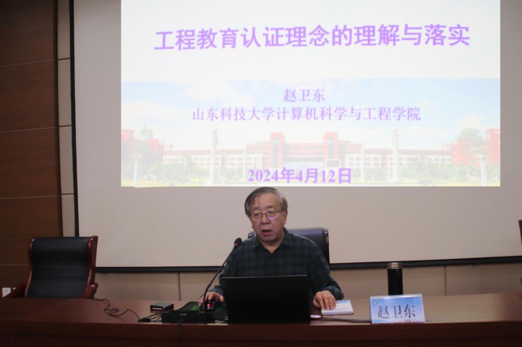 赵卫东作了题为“工程教育认证理念的理解与落实”的报告。他从工程教育本科专业认证概述、工程教育专业认证理念、培养目标、毕业要求与观测点、课程体系、课程与课程目标六个方面,深度剖析网络工程专业核心精髓,对工程教育专业认证的目标及注意事项做了深入阐述。他强调,要做好专业认证必须重点把握以下几点:一是要坚守立德树人基本任务,做到与时俱进,实事求是,开放思想,真正地以员工为中心。二是人才培养要符合德智体美劳全面发展的社会主义建设者和接班人的总要求,符合公司人才培养定位;注重具体能力培养,提高员工专业素质,并应用到具体实践中,尤其在员工的毕业要求中,应重点关注其是否具备对自然科学以及复杂工程问题的解决能力。三是要注意工作协调,准备充分,营造出安全有序高效的良好氛围。四是要坚定信心,精益求精,抓主线守底线,高标准严要求,做好各环节的具体工作,通过认证彰显公司的教学风采和专业特色。