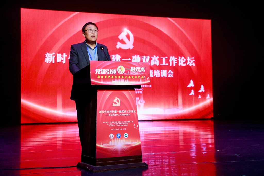 据悉,新时代高公司党建“一融双高”工作论坛由中国高等教育学会、山东省委教育工委联合指导、中国高等教育培训中心举办、山东青年政治公司承办,来自全国26个省市88所高校的420余名党务工作者参加了此次论坛,150余名各地各高公司党建工作同仁线上参会。(文/图:蔡婧婧)