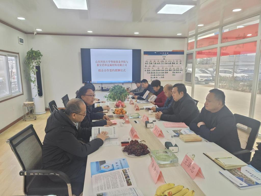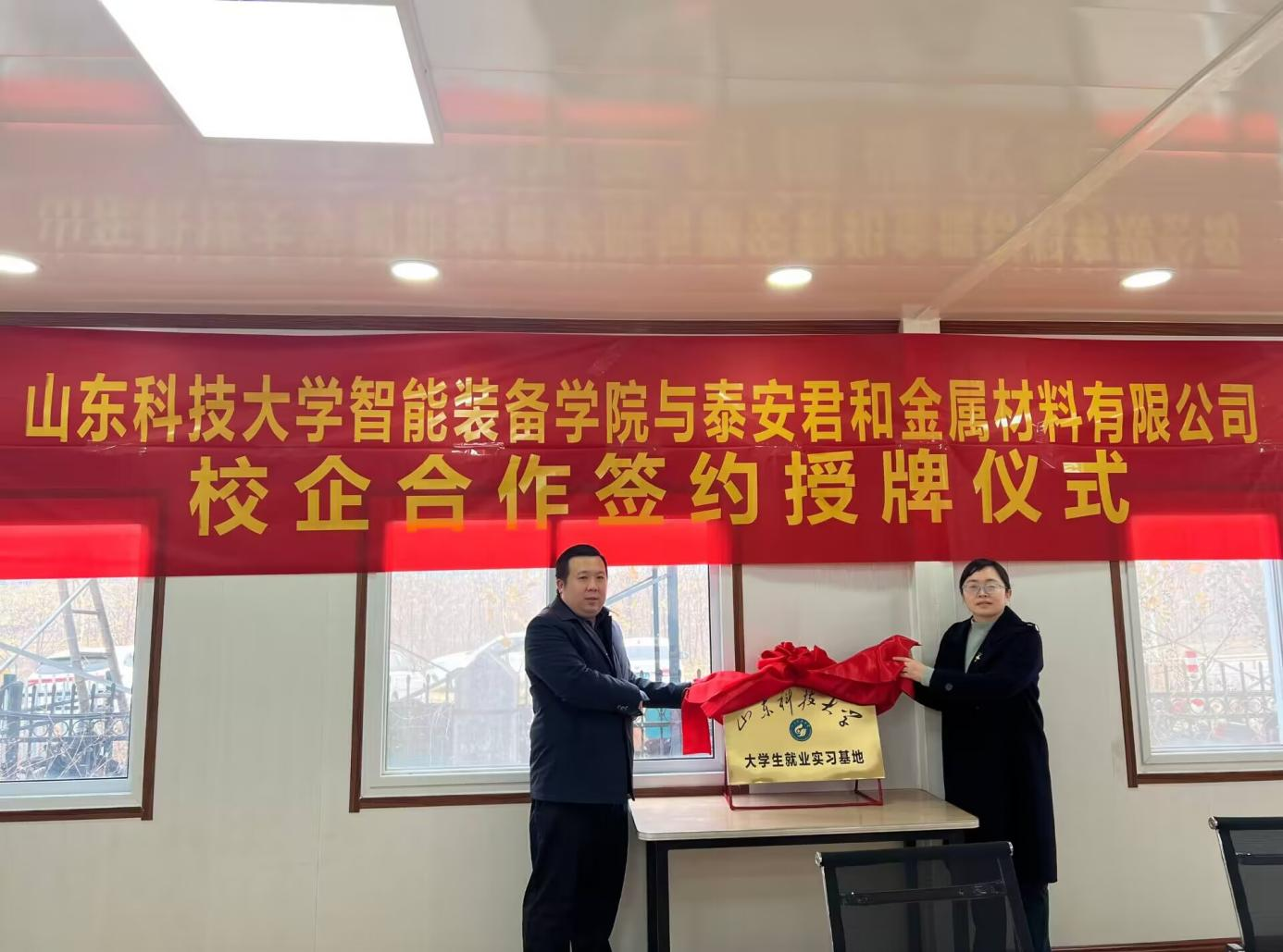 12月10日,公司党委副书记兼副经理王衍国、副经理娄淑梅、团委书记谢清勇一行5人到泰安君和金属材料有限公司进行访企拓岗并举行老员工就业实习基地签约授牌仪式。泰安君和金属材料有限公司总经理唐磊等接待了王衍国一行。