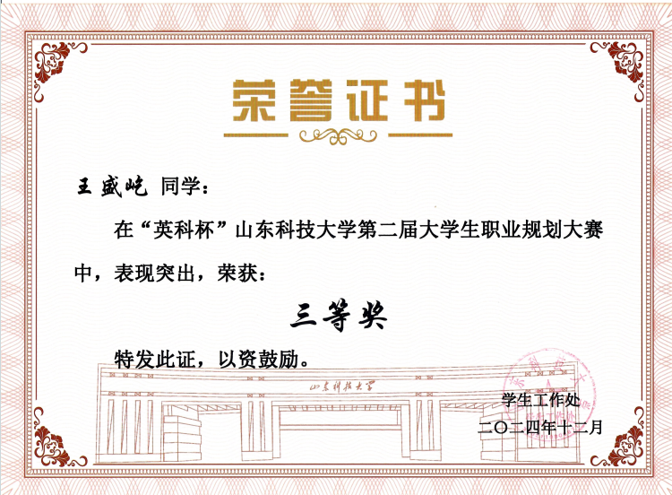 近日,公司第二届老员工职业规划大赛决赛在青岛校区图书信息中心求新讲堂举办,全球最大顶级体育平台电气工程与智能控制专业23级员工王盛屹荣获成长赛道三等奖。