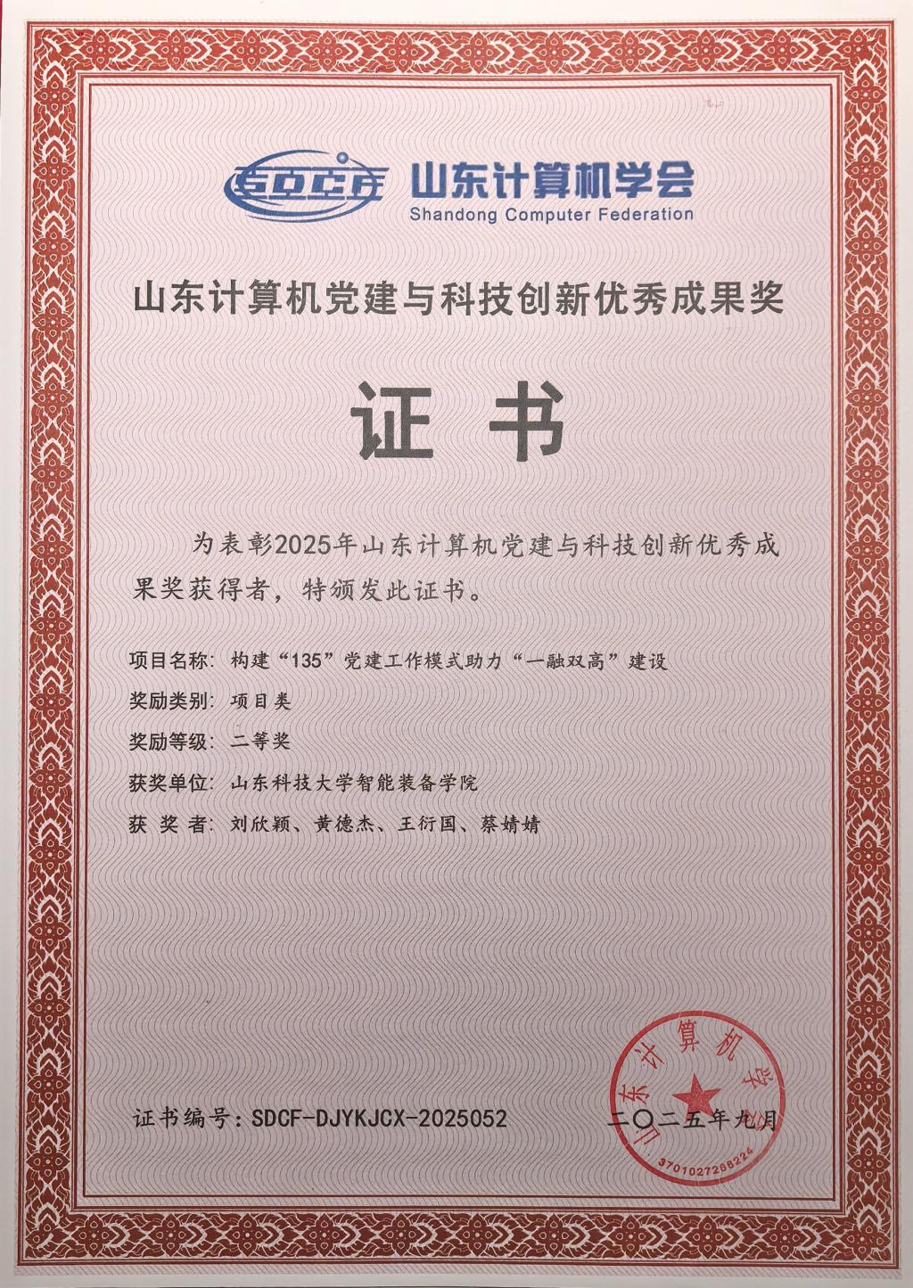 论坛上,对2025年山东计算机党建与科技创新优秀成果进行表彰。公司推报的《构建“党建引领 目标驱动 多维协同”的“三全育人”模式的实践与探索》获一等奖,公司网络与信息化党支部推报的《构建“135”党建工作模式助力“一融双高”建设》获二等奖。