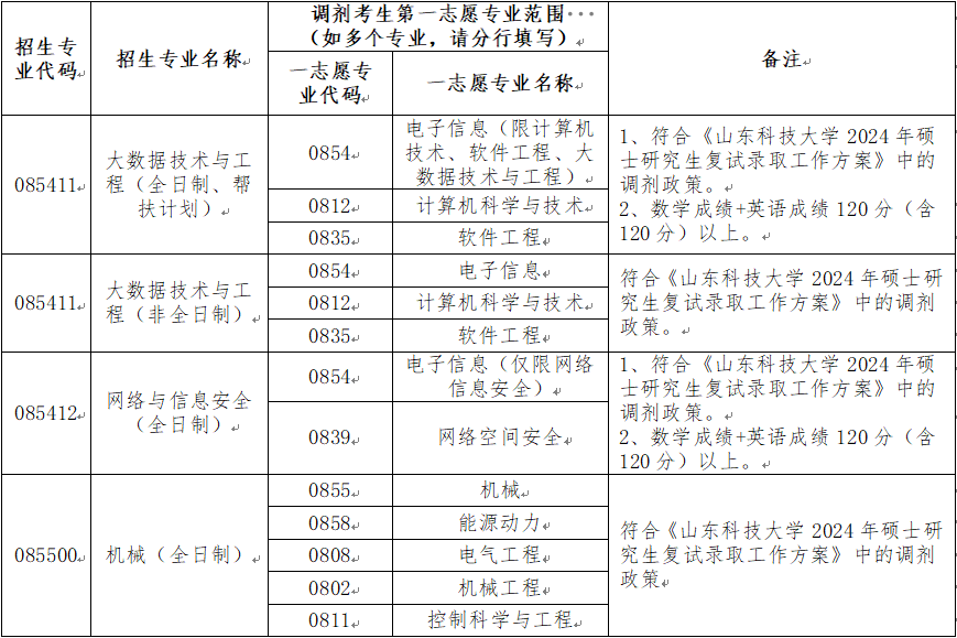 2、调剂考生第一志愿报考专业符合公司接受调剂专业相关要求,且符合公司招生简章规定的相关专业的报考条件(https://yjsy.sdust.edu.cn/zhaosheng/info/1130/1522.htm)。