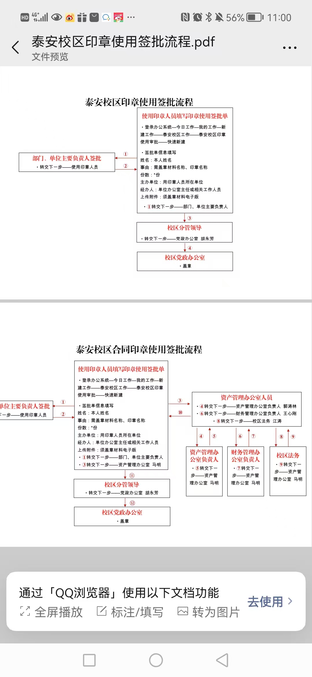 关于与资产合同印章审批流程说明:立项单位(责任主体)审核完合同提交申请上传附件——立项单位领导审核审批——资产管理办公室马明审核并负责同时提交资产、财务、法务(5万元之上的合同)——马明提交方亨福主任审批——方主任审批完成后立项单位经办人找胡永芳老师办理盖章
