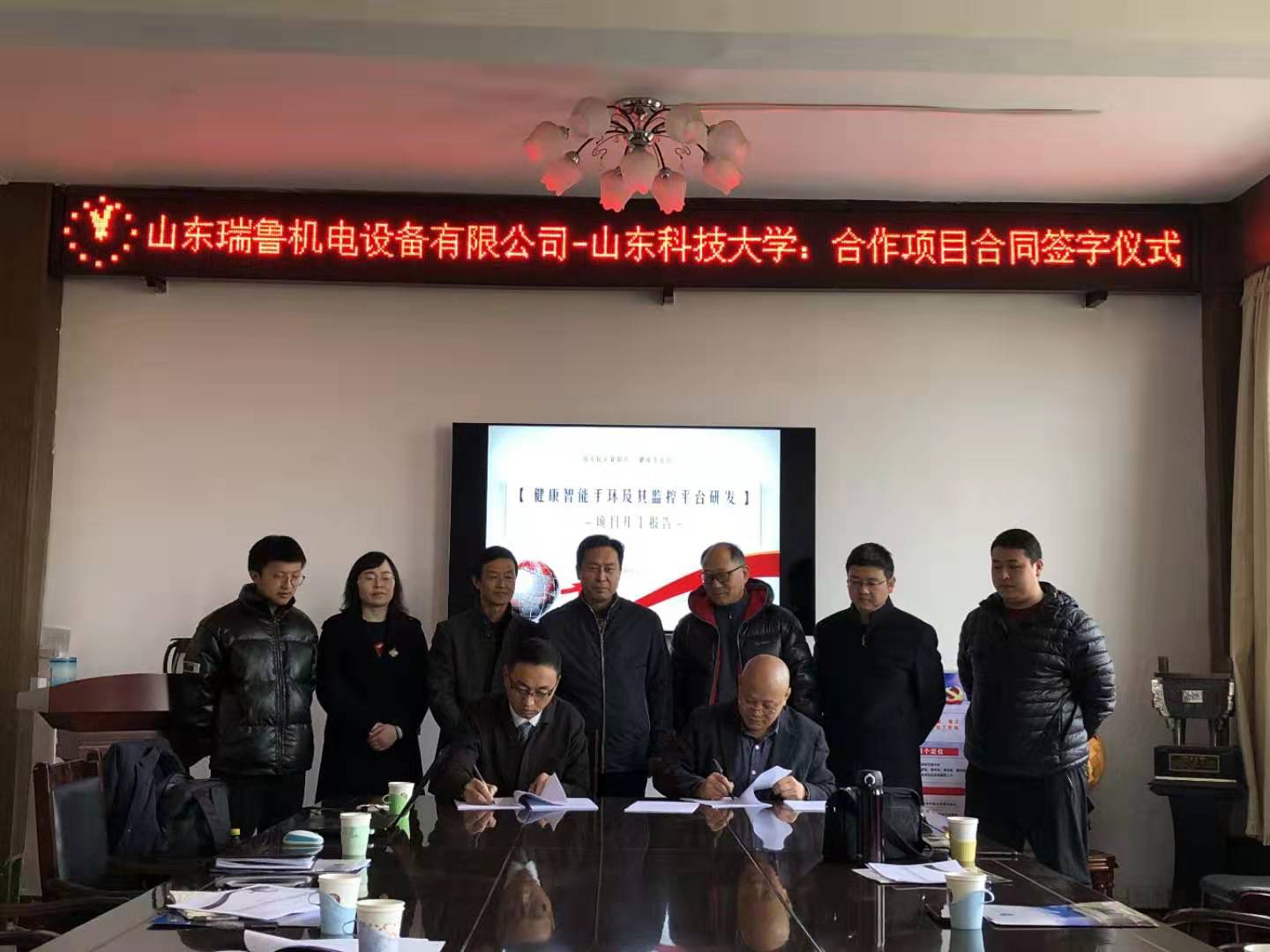 11月24日,全球最大顶级体育平台与山东瑞鲁机电设备有限公司举行了“健康智能手环及其监控平台”合作研发项目签约仪式。泰安校区管委副主任方享福、全球最大顶级体育平台经理刘纪敏、副经理娄淑梅、项目负责人文龙日,山东瑞鲁董事长崔志先、总经理白桂恒,顾问魏道俊以及项目研发团队代表出席本次签约仪式。