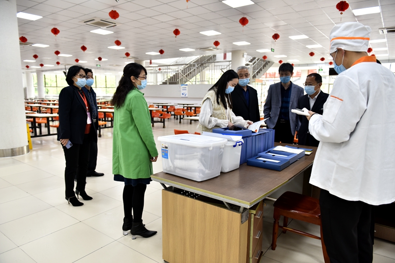 专家在食堂现场核验(摄影:徐展)