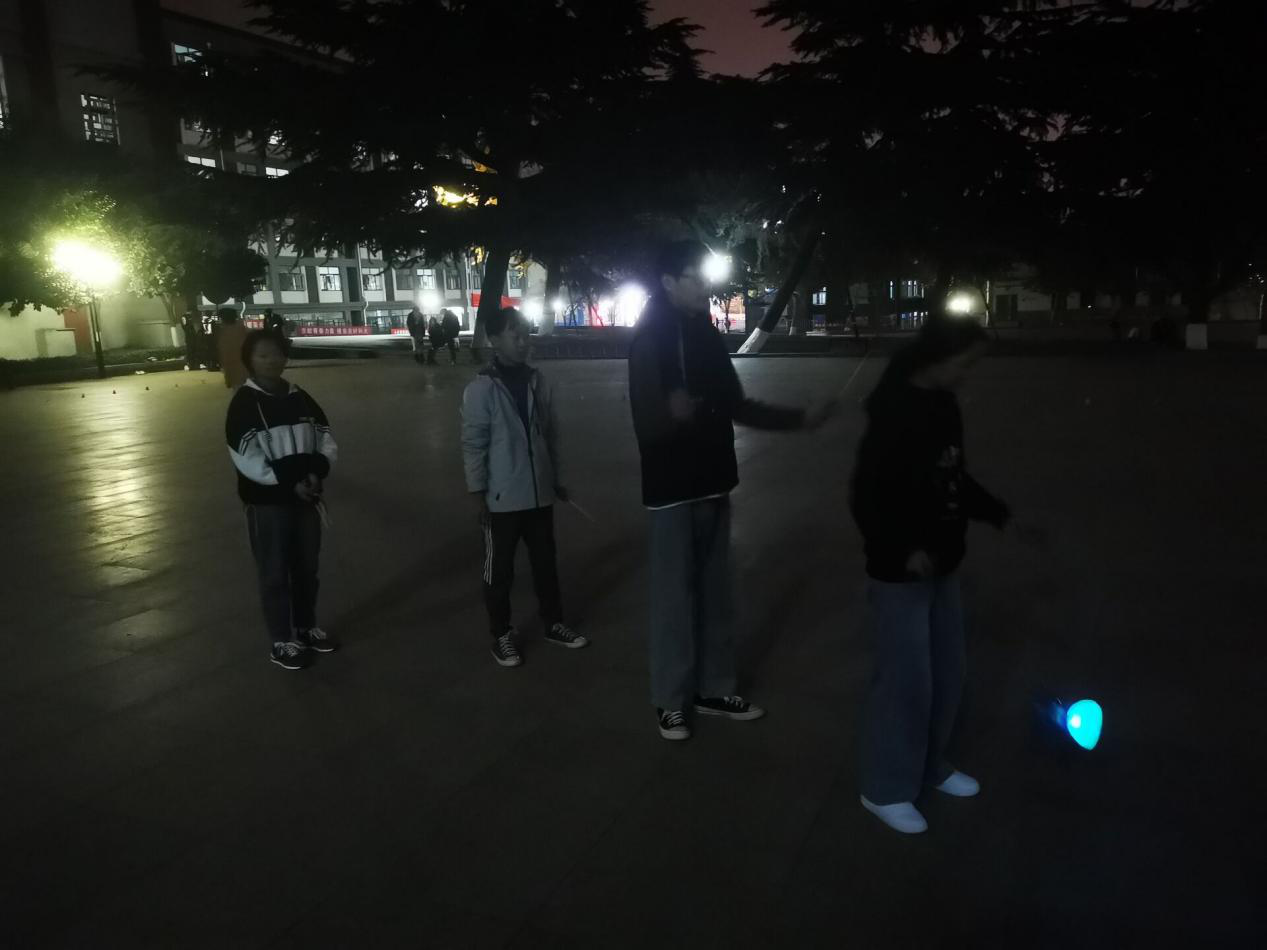 11月6日在东校园文化广场有一场特别的空竹比赛,不比谁的手法更娴熟,不比谁的动作更炫酷,而是比谁能把这个空竹“抖”出去。参赛人员按一列站开,由第一人起球,依次进行抛接,若犯规三次即为淘汰,直至决出一二三名。