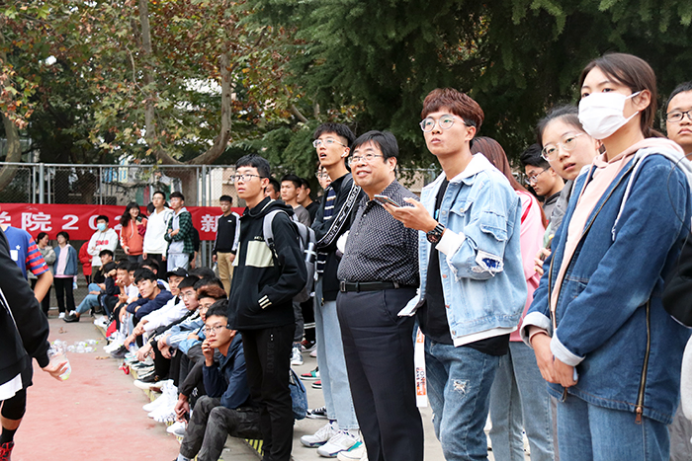 党委副书记兼副经理裴国栋与同学们一起观看赛事。