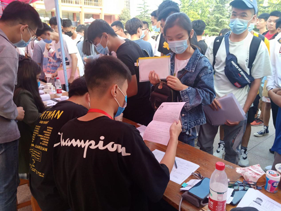 员工兼职辅导员秉承“高效、负责”的原则,耐心细致的为新生办理入学手续。(文/图:李兆印)
