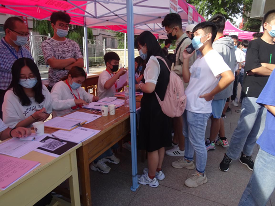 全国疫情防控常态化,校门是第一道防线。在这个特殊的开学日,志愿者们早早就来到校门口,设立迎新报到处,并为新生们耐心指引。