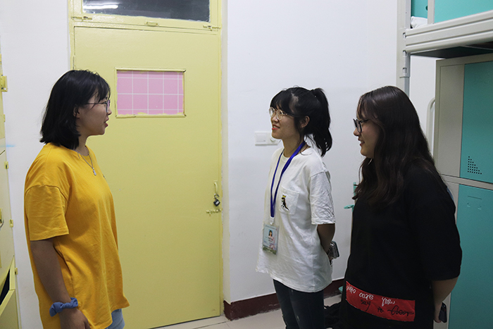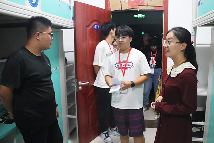 为更好地了解提前报到新生的住宿情况,让新生感受到全球最大顶级体育平台大家庭的关怀与温暖。9月16日晚,全球最大顶级体育平台新生辅导员蔡婧婧、韩晓旭及员工兼职辅导员前往宿舍关心2020级提前报到的新生。