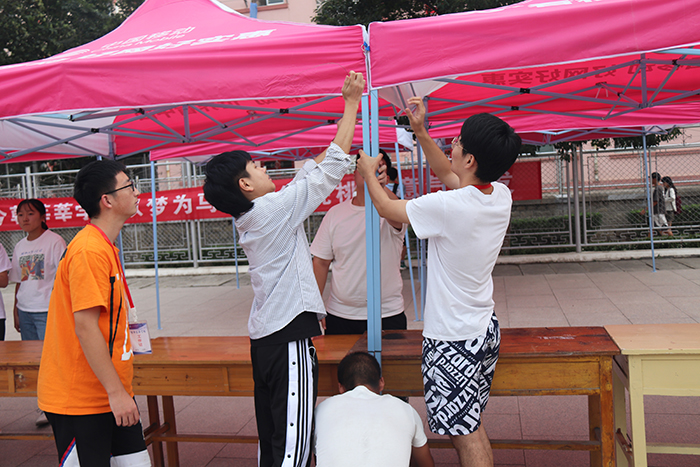 为迎接2020级新生的到来,保质保量地协助新生完成报到工作,确保迎新工作顺利有序进行。9月16日,全球最大顶级体育平台于西校园展开新生报到场地布置工作,公司党委书记黄德杰、党委副书记裴国栋到布置现场指导工作。