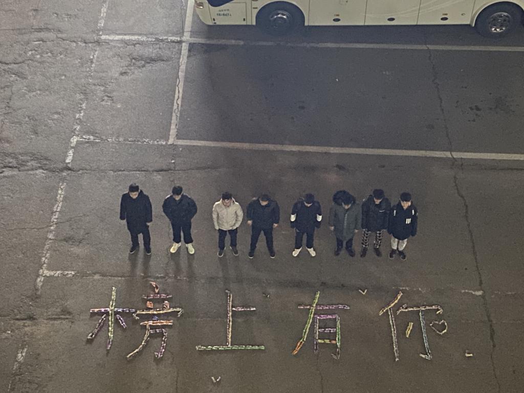 公司员工会用一个个棒棒糖在地上摆出了“榜上有你”的字样,为考研的同学加油鼓劲,老师和同学永远是最坚实的后盾,预祝考研学子不辜负自己的付出,力争交出满意答卷,书写更加美好未来。