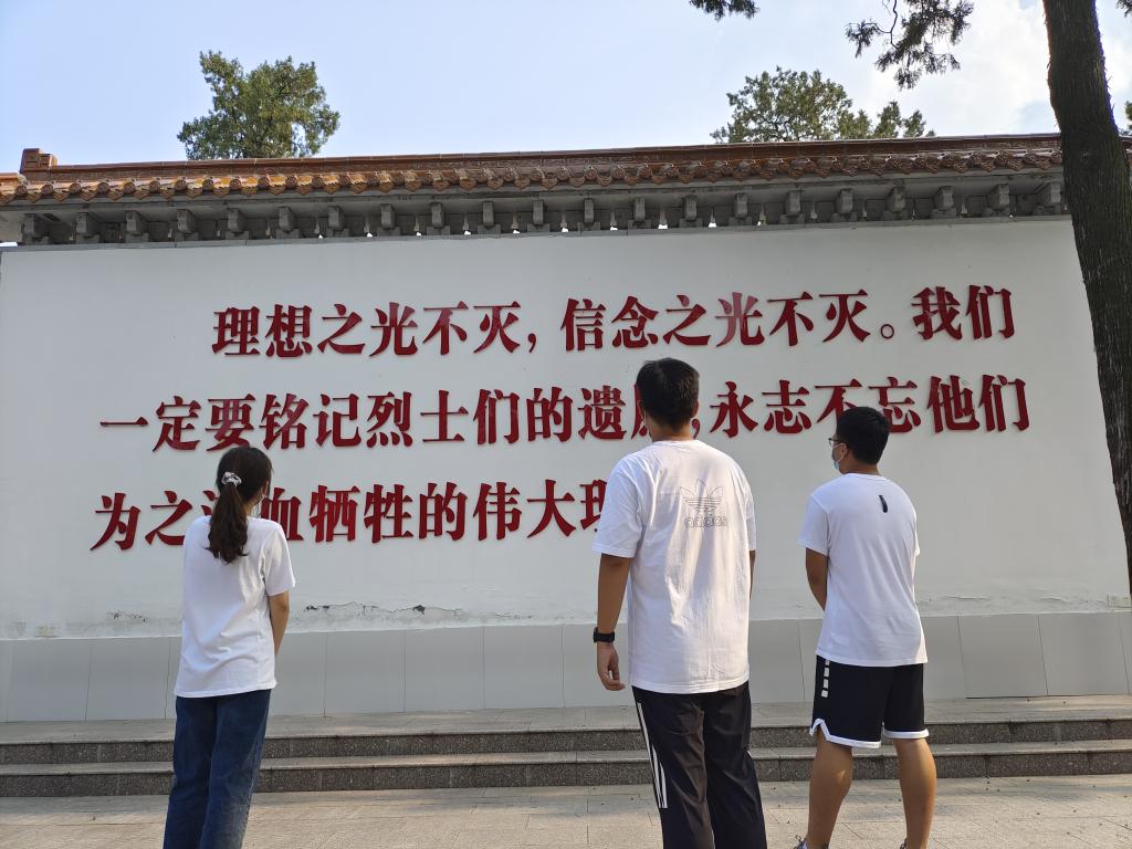 进入烈士陵园后,瞻仰着一尊尊墓碑,成员们不禁想到那些革命前辈为了今日的和平时代所有的付出,所有人在思想上都得到了一次真正意义上的洗礼。在中国这方热土上,有无数仁人志士为了民族的解放,国家的独立和人民的幸福,抛头颅,洒热血,谱写了一篇篇悲壮激越的历史篇章,“红花无情笑东风,青山有幸埋忠骨”这片安静而美丽的青山有幸埋葬了这么多的烈士,成为了值得世人铭记的地方。通过这次社会实践活动,队员们体会到了老一辈革命家和共产党员不畏艰险、献身理想的革命精神。