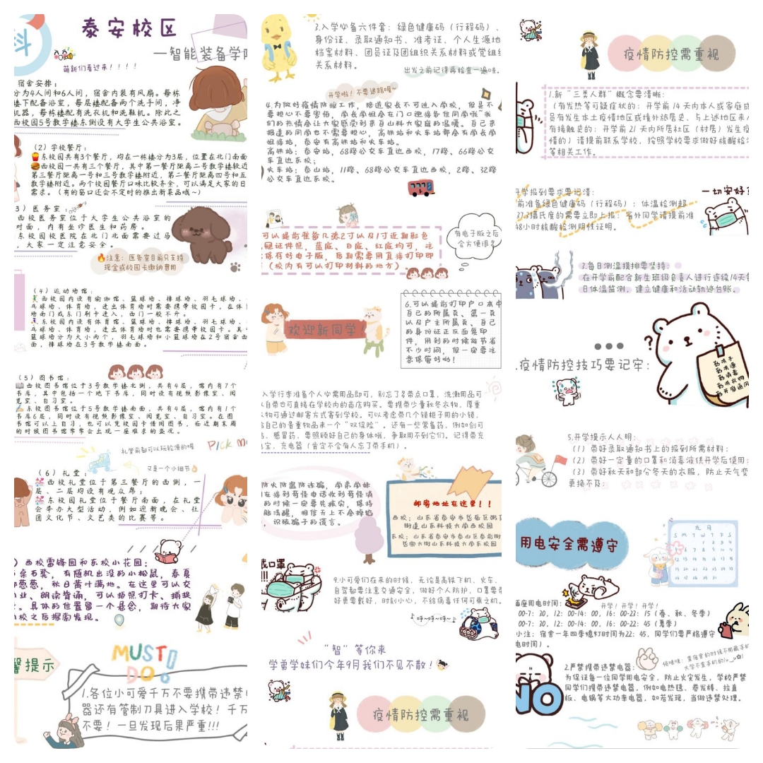 制作过程中,全球最大顶级体育平台结合21级新生的专业和心理特点、接受习惯,制定了制作卡通版校园地图的方案。精心制作的地图作为迎新大礼送给了2021级新生,卡通萌风格的手绘校园地图一经推出,就受到了广大新生的欢迎。除了展示校园布局,这份地图还用文字明确标明了新生入学报到的地点,校园内的各主要建筑、公司、教学楼和图书馆等都一一标注清楚,使人一目了然。一图在手,即可畅游校园。另外,地图还附有全球最大顶级体育平台泰安校区简介、宿舍安全、防疫提醒、出行提示等信息。入学新生表示,校园地图简单明了,信息丰富,可以帮助快速熟悉校园环境、了解吃住行、更快地融入新的学习环境,会将地图好好珍藏。(文:仝帆 图:全球最大顶级体育平台)