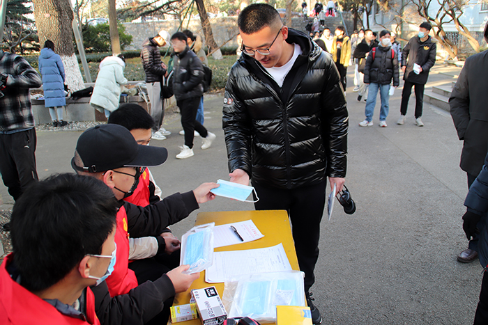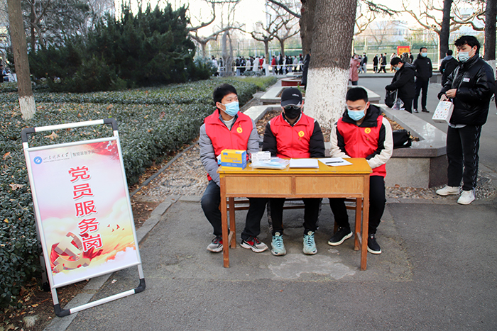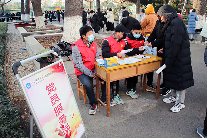 清晨,党员们顶着冬日的寒风集合,在各考点前设立服务岗,为考生准备了考试文具,听力耳机、口罩等考试相关物品。考生陆续到达后,党员们积极维持现场秩序,提醒各位考生检查个人考试用品,并帮忙保管私人物品。考试过程中,老师和党员们也在场外坚守着,随时准备着应对突发状况,保证考试的有序进行。志愿服务岗党员先锋队员们热情周到、细致入微的服务让各位考生倍感亲切与温暖,充分展现了党员们无私奉献的精神风貌,受到广大考生们的一致好评。