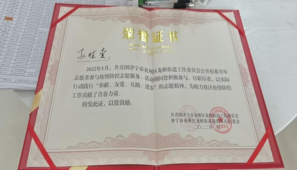孙胜壹同学以踏实肯干的精神、严谨负责的工作态度赢得了社区居民与工作人员的一致好评,并获得了“优秀志愿者”的称号。其实,像他这样的同学还有很多,他们在公司里努力学习、积极组织参加各种活动,而当国家需要时便毫不犹豫地挺身而出,为祖国献出自己的一份力量。