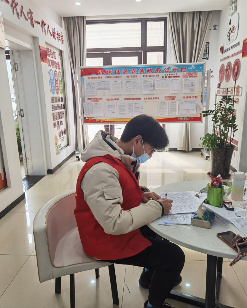 每天清晨,孙胜壹便会准时到达工作地点开启一天的工作,他的任务主要有三项:一是打电话询问新冠疫苗加强针接种情况;二是接种站点帮忙登记;三是在小区门口站岗测温。在进行第一项工作时,他发现有一些居民碍于工作等原因没能及时完成加强针的接种,而面对这种情况,他总会一遍遍地耐心讲解接种加强针的重要性,提醒居民们及时接种,保护自己,保护他人。