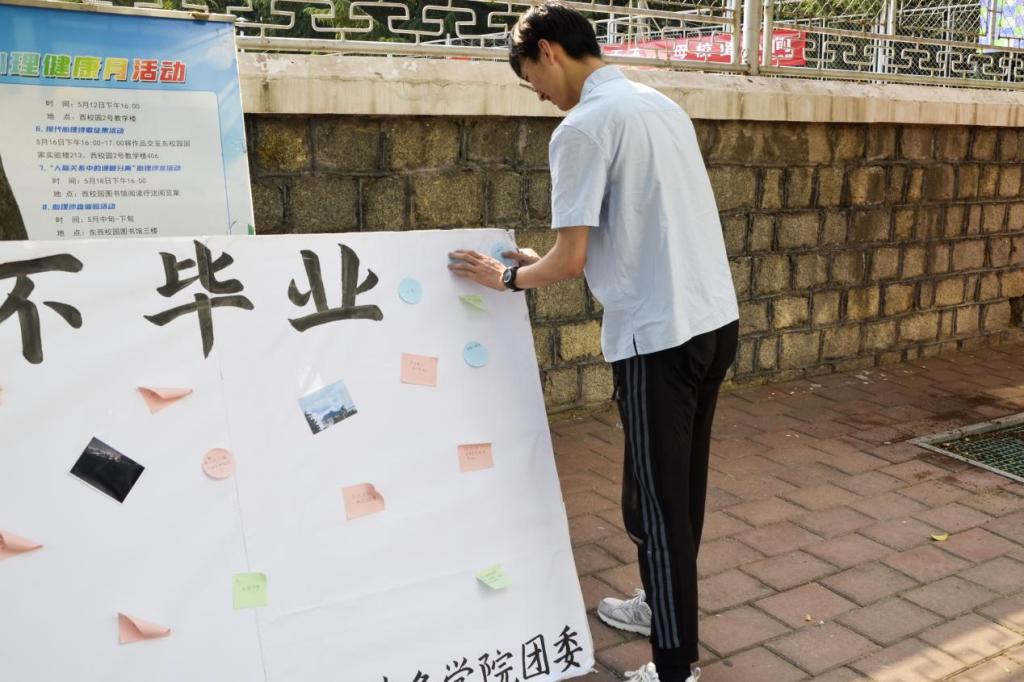 毕业生们从校园各处赶来签名留言,用自己的方式留下对智院的眷恋,对母校、对老师、对同窗的感激和依恋情怀,表达对学弟学妹们的期望和祝愿,诉说对未来的憧憬。“愿此去前程似锦,再相逢依旧如故”、“一帆风顺,不负少年梦”......留念不舍之意,毕业生们也将带着珍贵的记忆离开公司,把美好的心愿留在科大。