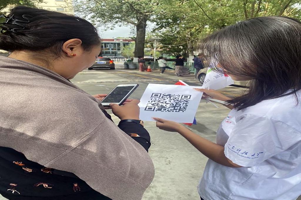 在少数民族地区推广普及普通话是各族人民的共同责任和义务。西藏是我国特殊的边疆民族地区,为促进各民族间的交流与团结,实践队员分别赶赴拉萨市、山南市开展推广普及普通话活动。前期,团队成员深入实践地,详细了解当地普通话推广情况。通过调研,队员们发现,由于地处祖国边陲,外加当地主要为少数民族,所以居民对普通话知识掌握较差,日常生活中更是很少用普通话对话。对此,团队成员根据实践地居民普通话水平和实际需求,制作普通话调查问卷及推广手册,并搜集大量音视频资料及网络教学资源。