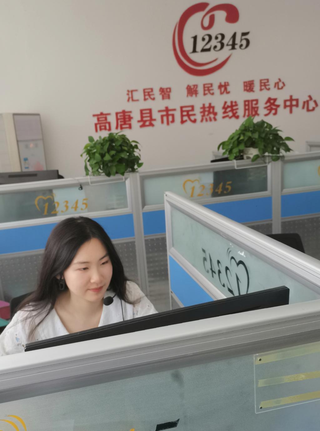 此外,李梦琪积极加入政府市民服务热线中,认真倾听市民诉求,及时回访、记录、反应和协助解决群众问题,为群众发声。“喂,您好!这里是高唐县政府市民服务热线,您之前拨打12345反映的问题解决了吗?”“已经处理好了,你们还特地打电话关心此事的处理情况,真的太贴心了!”一根电话线,搭起连心桥。听到电话另一头市民们满意的答复,李梦琪的心中充满了成就感。