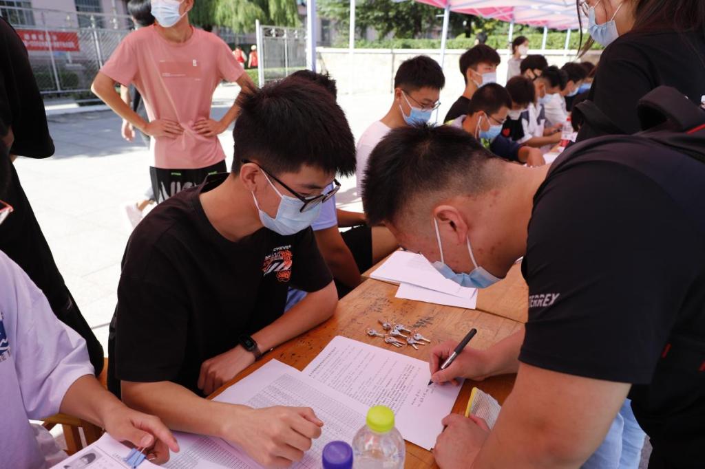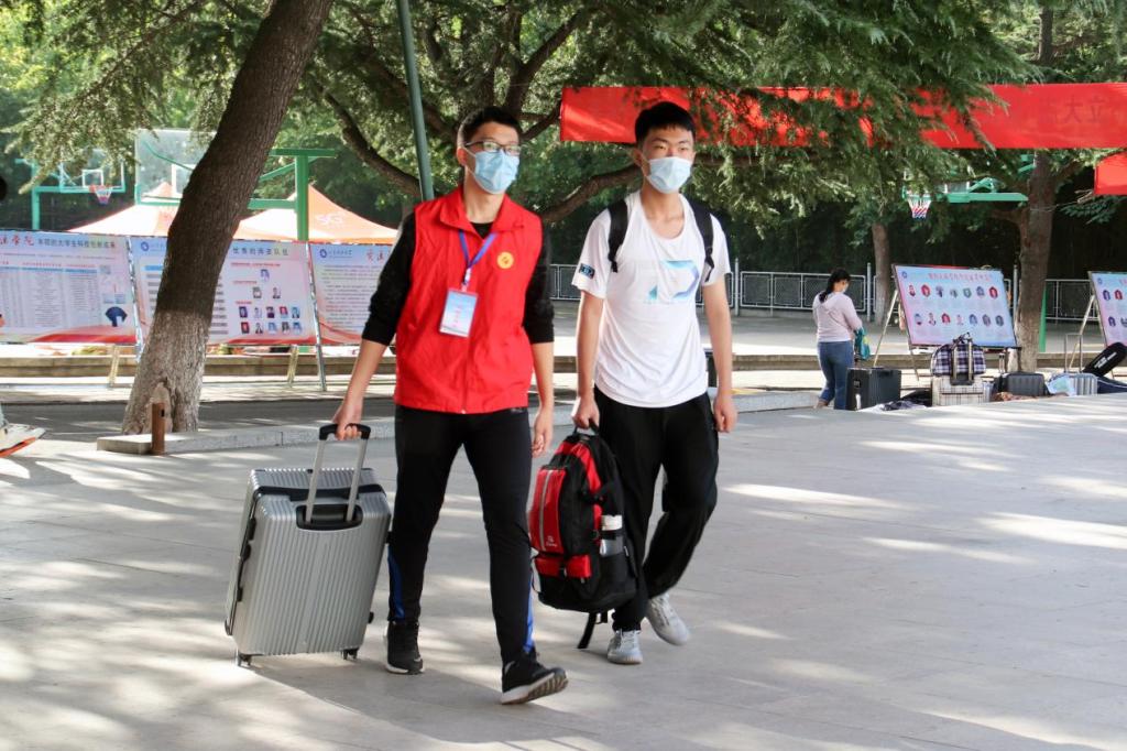 入校后,员工志愿者积极接过行李,引导新生至公司报到处,完成报到登记。