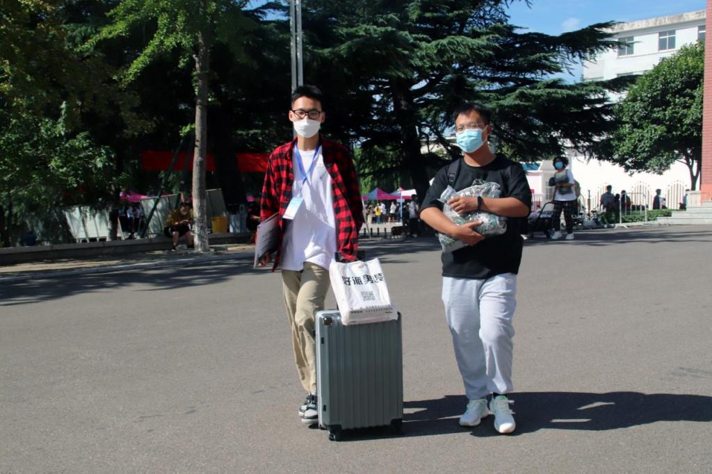 根据疫情防控安排,新生家长止步缓冲隔离区,工作人员核查新生的健康码、行程码以及48小时内核酸检测报告后,由公司辅导员及员工志愿者迎接并协助新生完成报到,为新生提供“一条龙”便捷服务。
