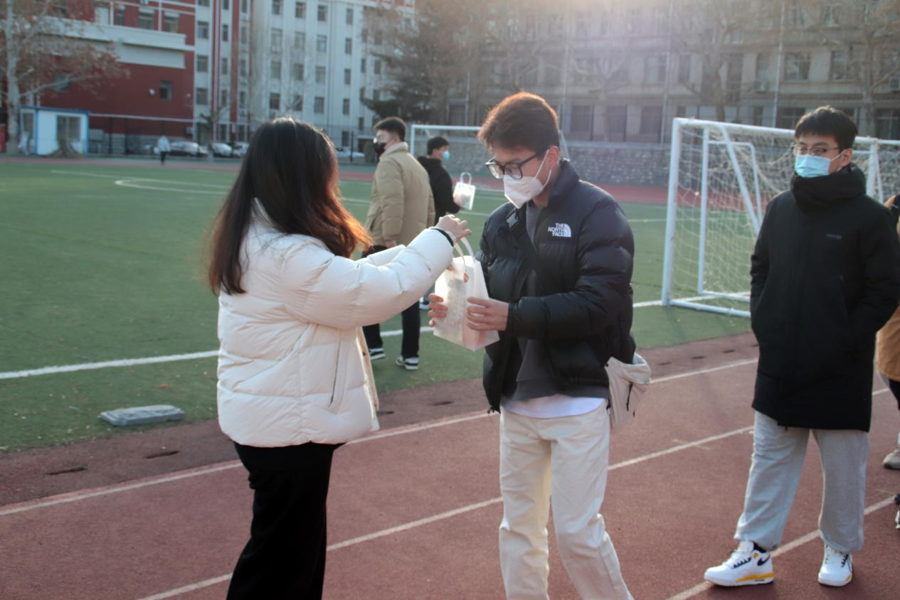精心挑选的“吉祥物”为学子们送上关于勇气和毅力的奖赏。文具袋、橡皮、涂卡笔,“金榜题名”的“加油”套装,给即将踏上战场的学子们“补充弹药”,助力学子日夜兼程的奋战时光。黄澄澄的脐橙摆成心形,寓意着“心”想事“橙”,有着山科专属图案的口罩将代表公司陪伴着学子们度过备战考研的时光,礼袋中的暖宝宝将给每一位冬日孤独的“赶路人”穿上温暖的“铠甲”,老师们亲手送出山科特制的签字笔,祝愿学子们“拔出笔帽、抽刀出鞘“时,带着公司的期望和祝福,有着“金榜题名”的信心和“当凌绝顶”的傲气。