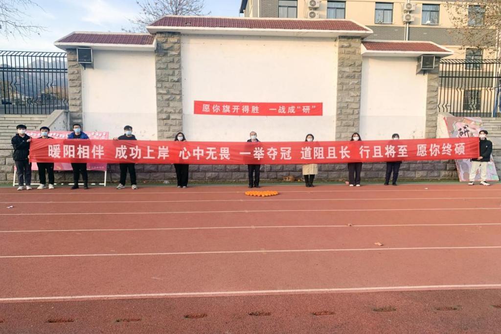 “愿你旗开得胜,一战成研”“研途顺意,有条不紊”“暖阳相伴、成功上岸、心中无畏、一举夺冠、道阻且长、行且将至、愿你终硕”“2023考研学子一往无前、一战必胜、一“研”为定。”鲜红的横幅上,一条条暖心的祝福语,这是考研学子们最真实的写照,也是公司最真挚的祝福。祝福学子们在紧张复习的日子里有条不紊,在认真准备的研途中一帆风顺!