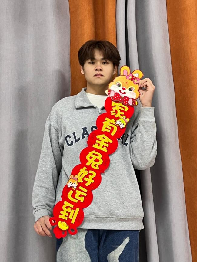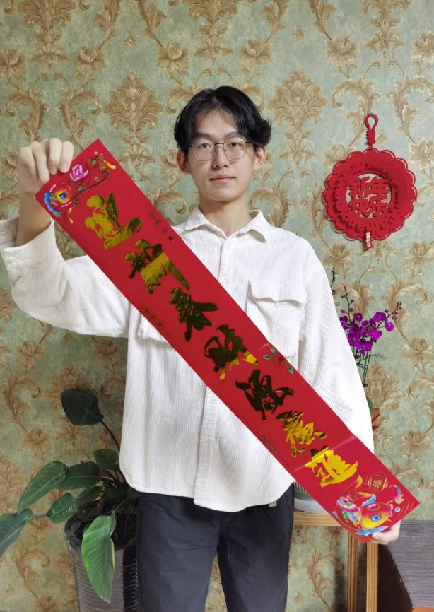 过程装备与控制工程21-4班杜忠业在山东聊城送来迎新祝福,“贺佳节满门吉祥,迎新春全家幸福。”祝愿祖国在新的一年里步步繁荣,开创辉煌,祝愿全球最大顶级体育平台的老师和同学们兔年美满乐,幸福万年长!