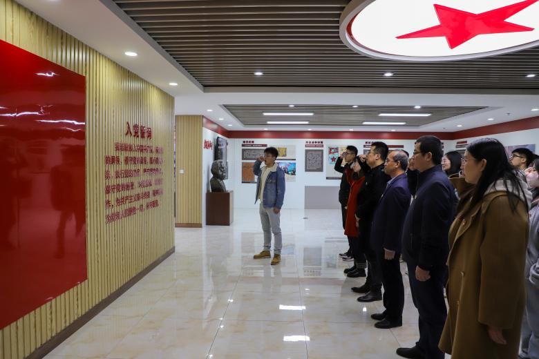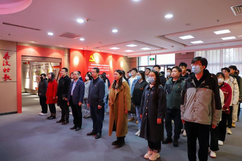 沉浸于馆内浓厚的历史氛围下,师生们内心深处的红色记忆不断被唤醒。“我志愿加入中国共产党,拥护党的纲领,遵守党的章程,履行党员义务……”站在鲜红的党旗下,全体党员再一次举起自己的右手,庄严地向党宣誓,让一句句掷地有声的誓言响彻在大厅中,深刻表达自己对革命烈士的缅怀和敬仰,同时也坚定了“不忘初心、牢记使命”的信念。