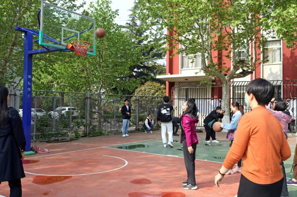 瞄准,投篮!老师们在场上争取胜利的同时,也在场上尽情享受篮球运动的乐趣!