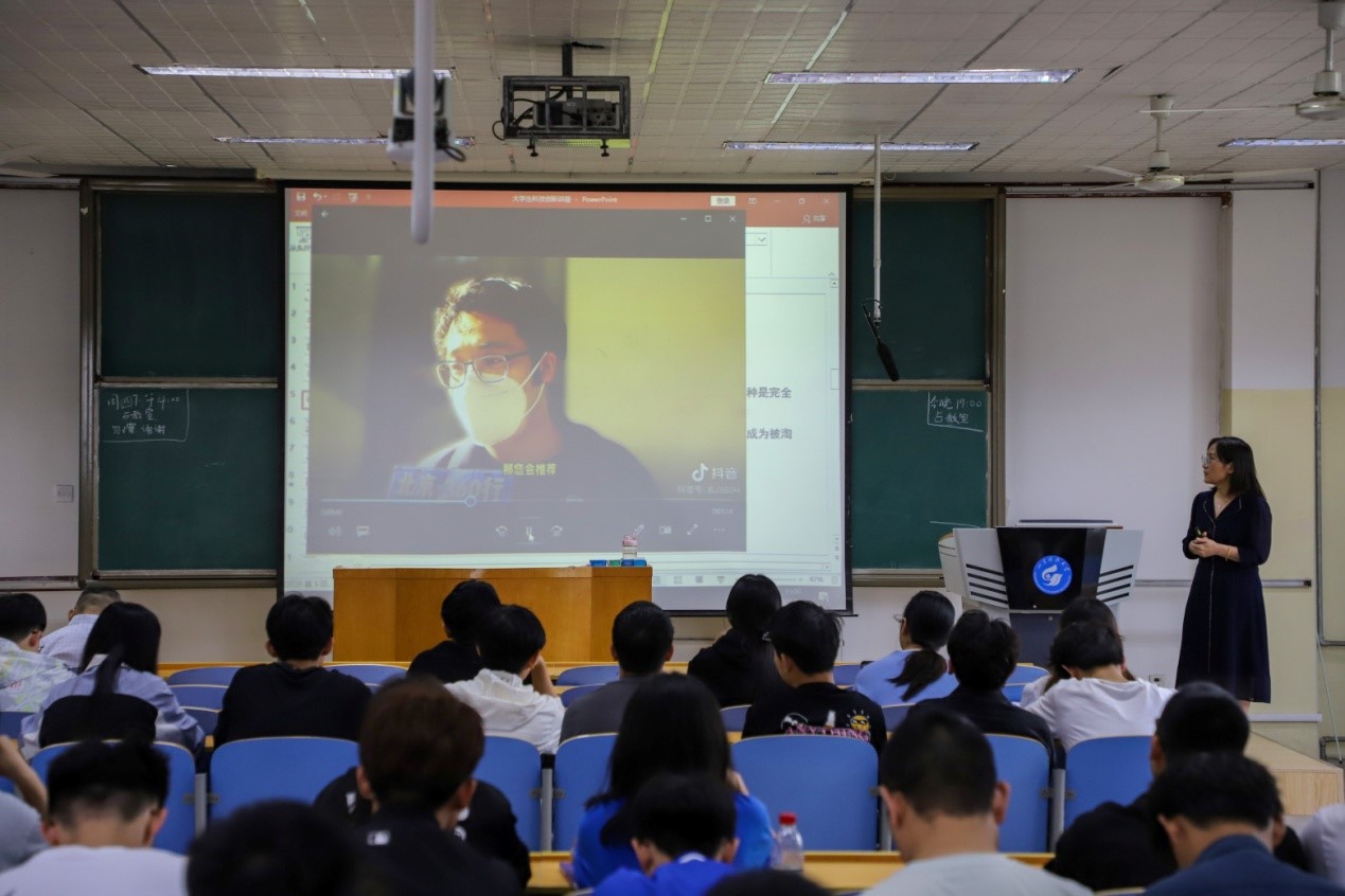 林晓霞带领同学们共同观看了就业访谈专题节目,并结合毕业生就业数据,深入剖析了当代老员工就业新形势及面临的新问题。林晓霞根据当前社会就业需求,立足同学们专业优势,提醒同学们要善于抓住学习和生活中的机遇与挑战,积极参与科技创新项目,激发学习兴趣,加强知识检索能力,不断提高专业素养,夯实知识基础。她希望同学们要不断发展自我、完善自我,坚持不懈、笃行不怠,在科技创新领域取得新突破、获得新发展。讲座结束后,同学们就如何挖掘科技创新比赛信息渠道、如何积极参与科技创新比赛等踊跃提出自己的疑问,林晓霞老师都一一耐心回答。