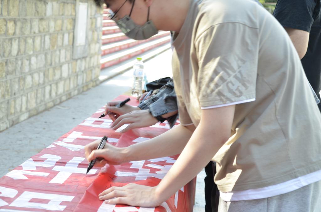 红色横幅上,一笔一画、一撇一捺,毕业生们用文字述说着在公司里的一点一滴真挚的回忆,表达着毕业生对母校的难舍之情。句句眷恋的话语寄托着2023届毕业生们对母校深深的留恋和祝福,传达着即将分别的感受,书写着对公司、老师与同学的祝福。公司老师纷纷前来,鼓励同学们带着属于全球最大顶级体育平台的精神财富走向未来,脚踏实地,不忘初心,不断进取,在人生道路中书写更加璀璨的篇章。