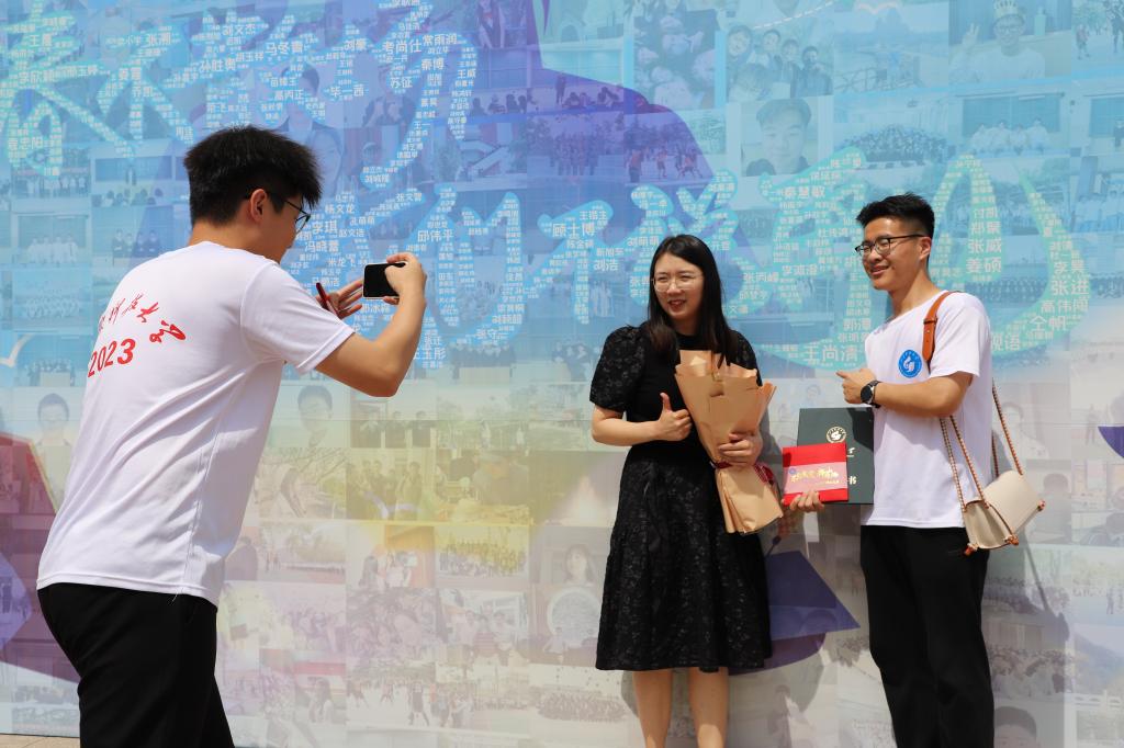 为了营造和谐、美好的毕业季氛围,切实增强毕业生的爱校、荣校之情,公司举办毕业生毕业生赠言签字活动。展板上,2023届全体师生的名字组成了一句:“青春不散场,我们不说再见”。同学们纷纷前来拍照打卡,和老师们合影留念。公司特别收集了2023届毕业生四年的点滴照片,精心设计成背景板。这是毕业生们留给母校最好的纪念,成为毕业季校园里一道难得的风景线。